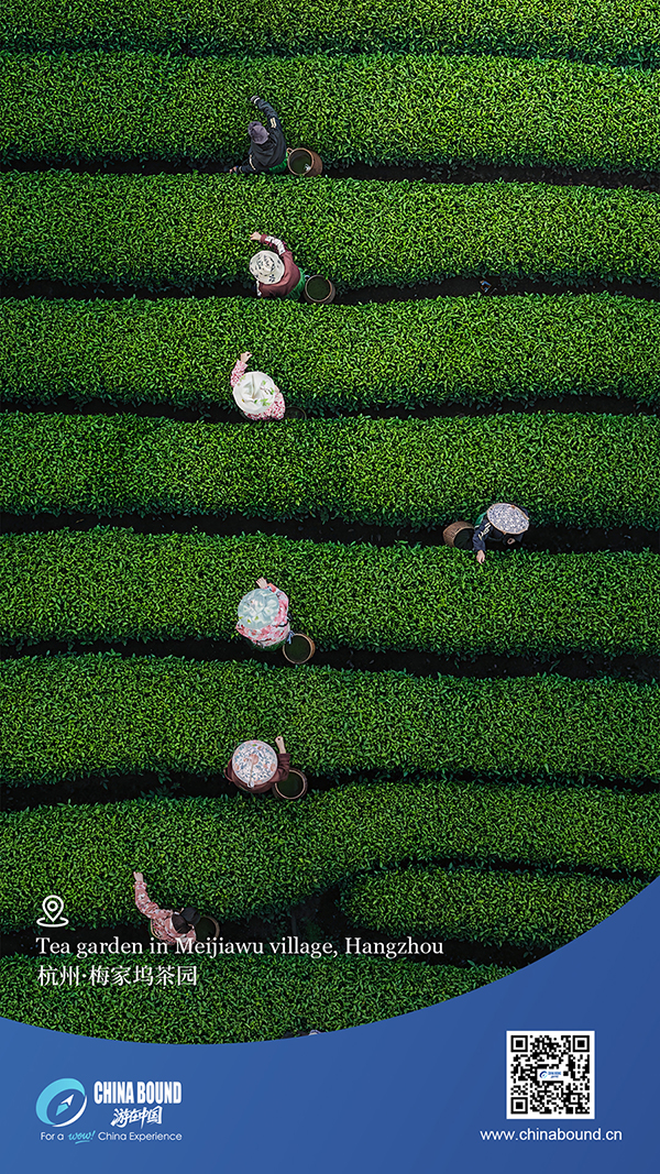 Пролетта тихо шепне в Ханджоу, провинция Джъдзян. На разсъмване в село Meijiawu производителите на чай внимателно берат пресни пролетни листа сред вълнисти зелени тераси. Окъпан в мека утринна светлина, спокойният пейзаж приканва към по-бавно темпо и тихо оценяване на красотата и обновяването на природата.